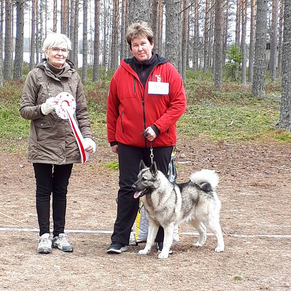 Konrad kom till oss som en parningsvalp efter vår egen hane Mäentaustan Nestori. Konrad föddes i januari 2016, flyttade till oss i mars och var därför redan första hösten gammal nog att få lite skogsträning och han skällde till och med i flera timmar. Följande höst startade vi provkarriären och Konrad fick de nödvändiga förstapriserna. Han hade redan samlat på sig några certifikat och några dagar efter att han fyllt två år fick Konrad sitt sista certifikat och blev dubbelchampion.